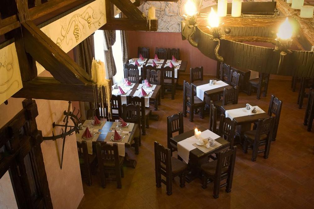 У дворівневій основній залі відтворена лицарська атмосфера стародавнього волинського міста. Основний зал може вмістити до 140 персон. В інтер'єрі переважає ліпнина і різьблене дерево. На другому поверсі є дві затишні бенкетні зали, які можуть вмістити 20 та 30 осіб. Також є літня веранда, де зручно посидіти з друзями чи в романтичній атмосфері. В ресторані можна святкувати велілля, день народження, корпоративи та інші урочисті події.